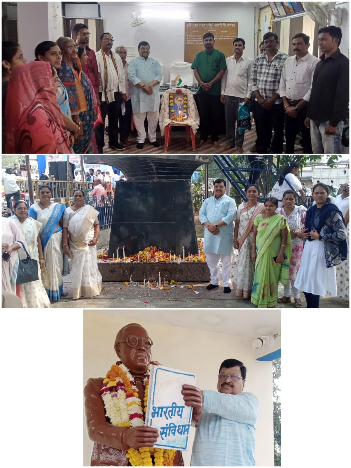 कृषि उत्पन्न बाजार समिती मुंबईचे नियमन सभापती व कामठी बाजार समितीचे संचालक हुकुमचंद आमधरे व माजी जिल्हा परिषद अध्यक्ष सुरेश भोयर यांनी समितीच्या कार्यालयात डॉ. बाबासाहेब आंबेडकर यांच्या प्रतिमेला पुष्पमाला अर्पण करून अभिवादन केले.
